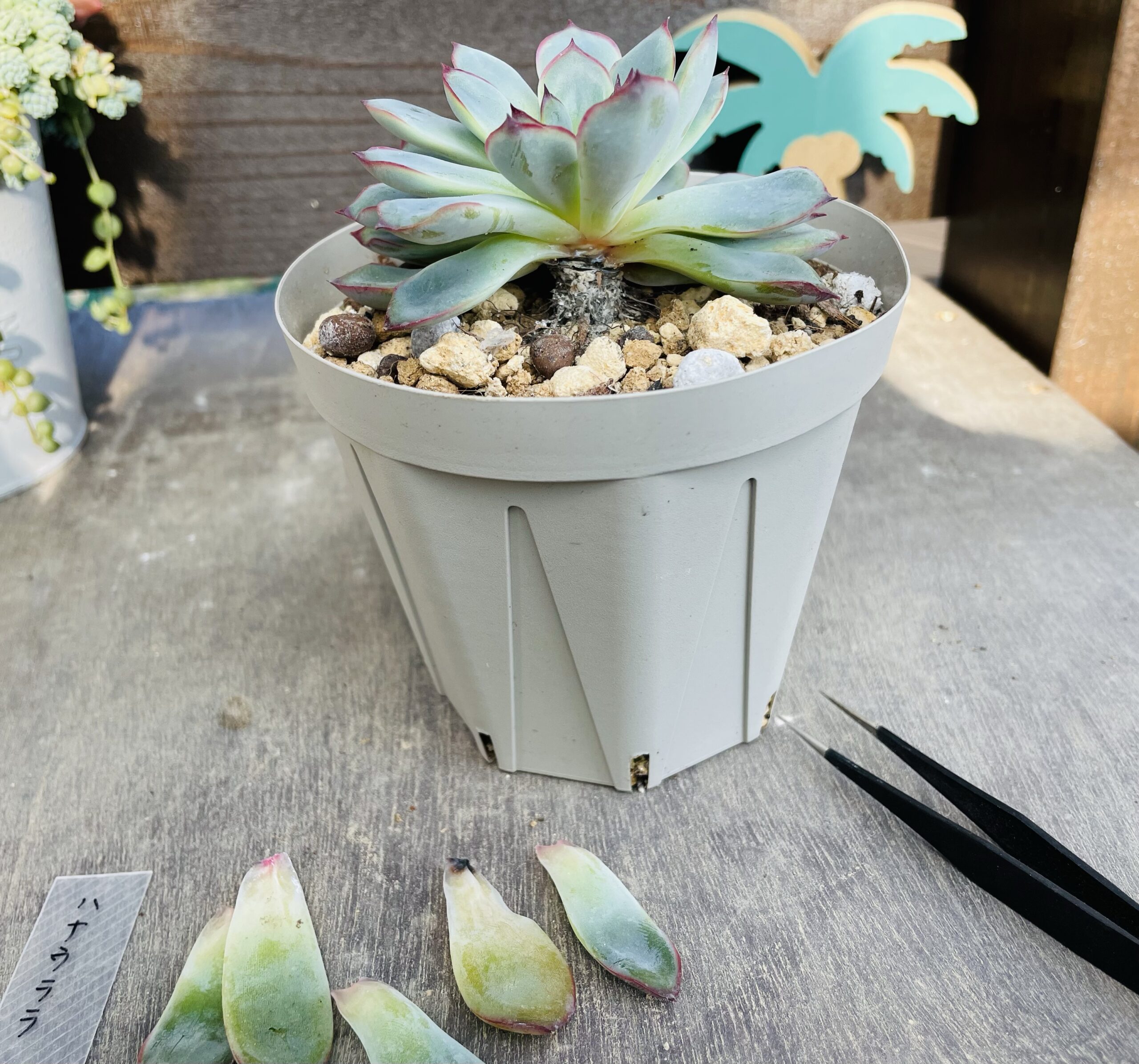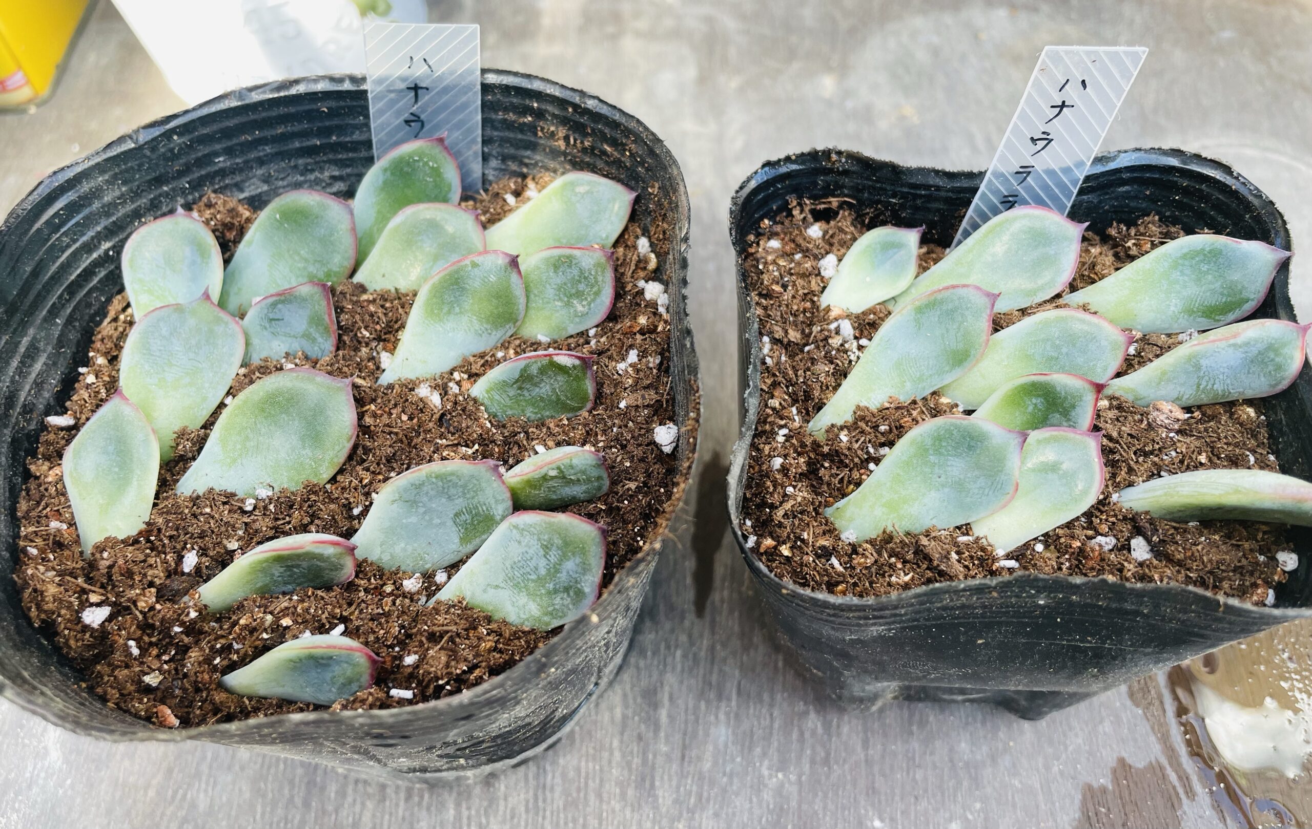 大きな屋根のある多肉棚でさえ、ほとんどの子が頭から水を被っていました