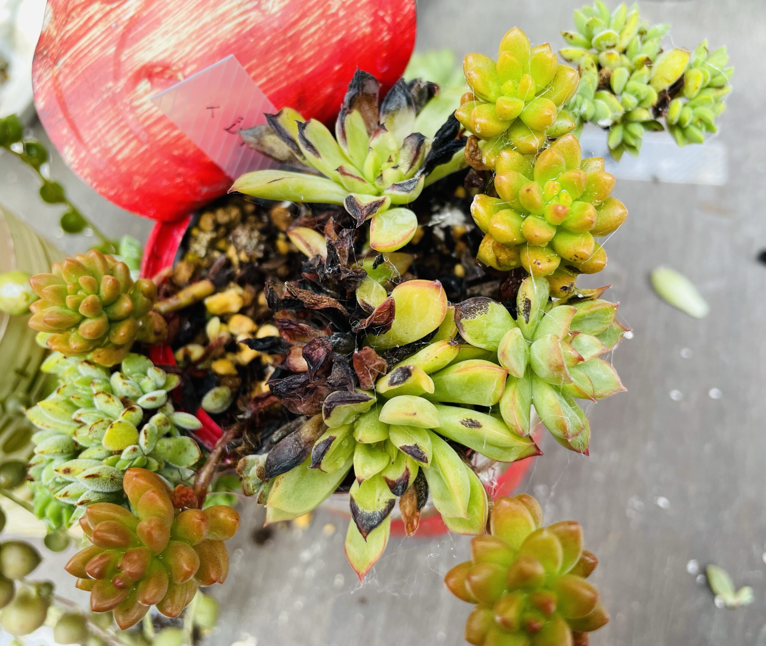 一番最初に焦げたのは、ミルク缶のエケベリアでした。