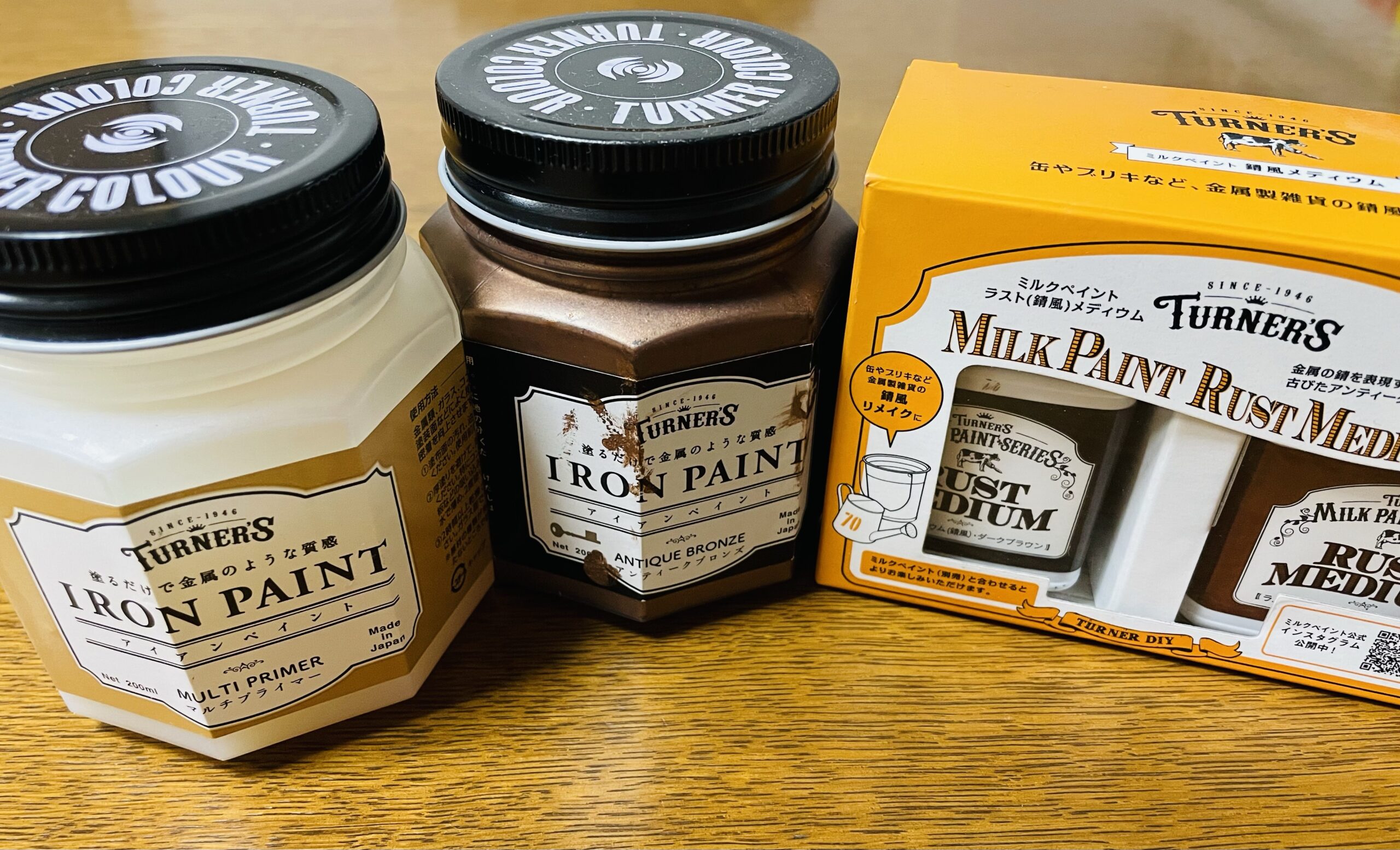 セリアには、棚の色に合ったL字金具がなかったので、アンティークメディウムで好みの色に塗装してあります