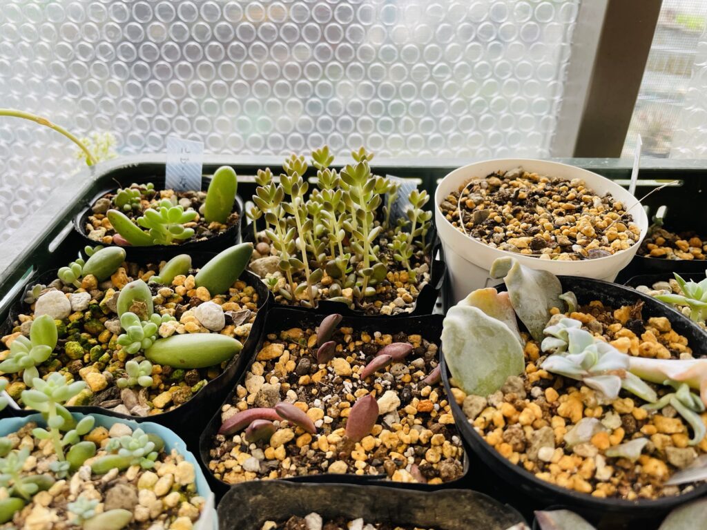 冬季は、特に寒さに弱い種類、弱っている子、葉挿し(の一部)などは