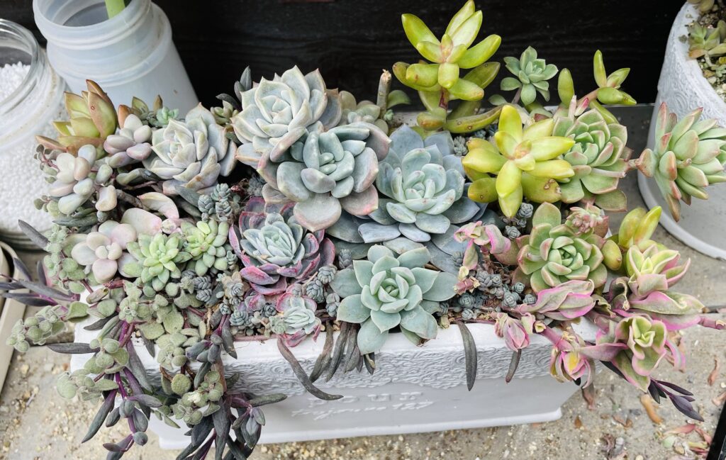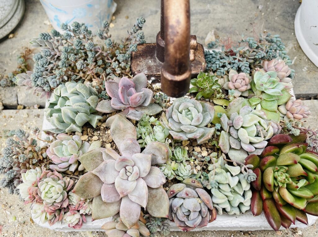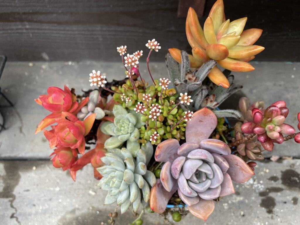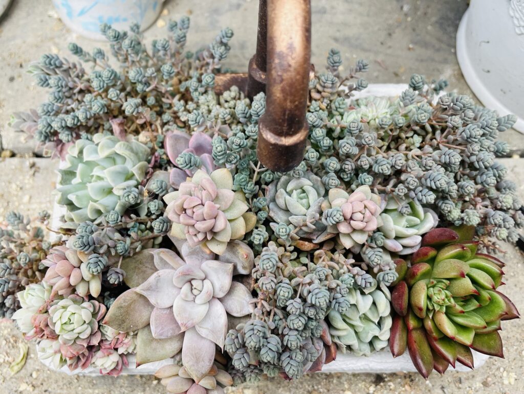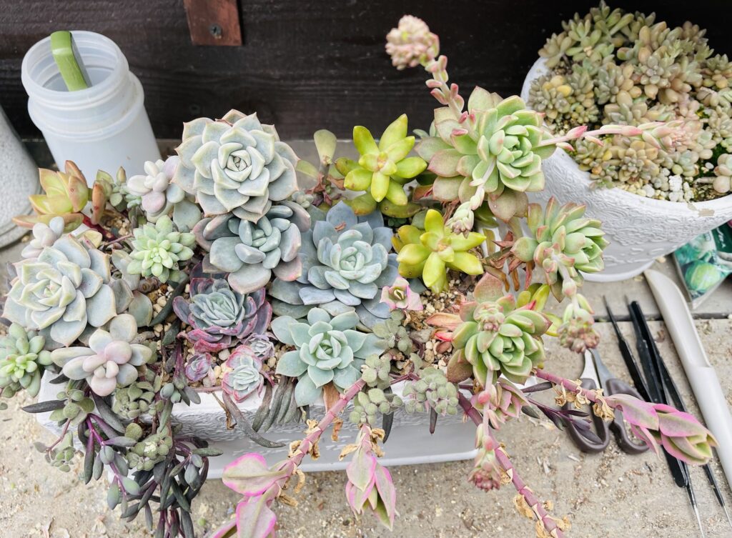 鉢の中で多肉を組み合わせて作る寄せ植えは