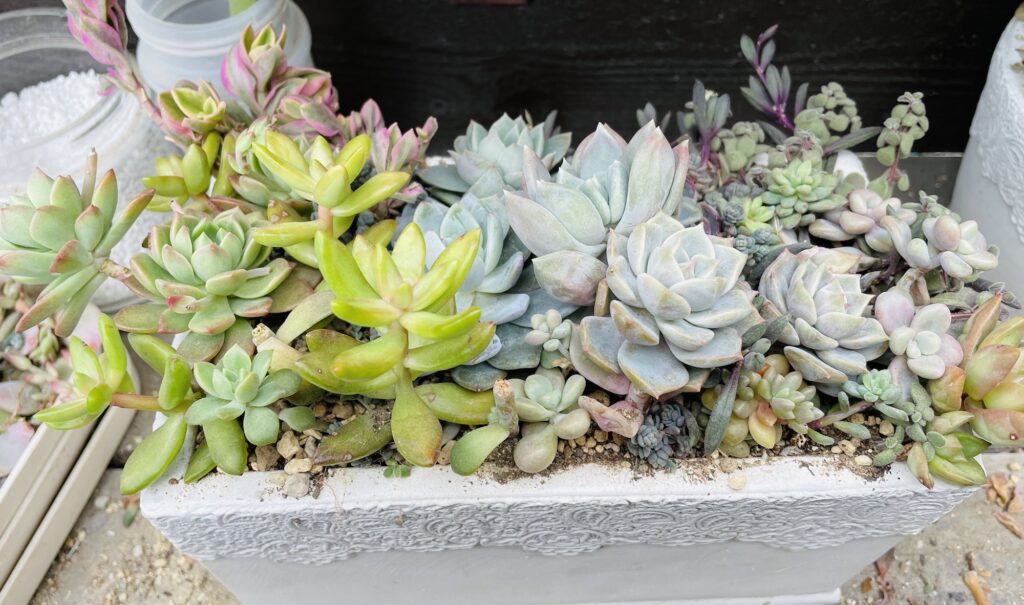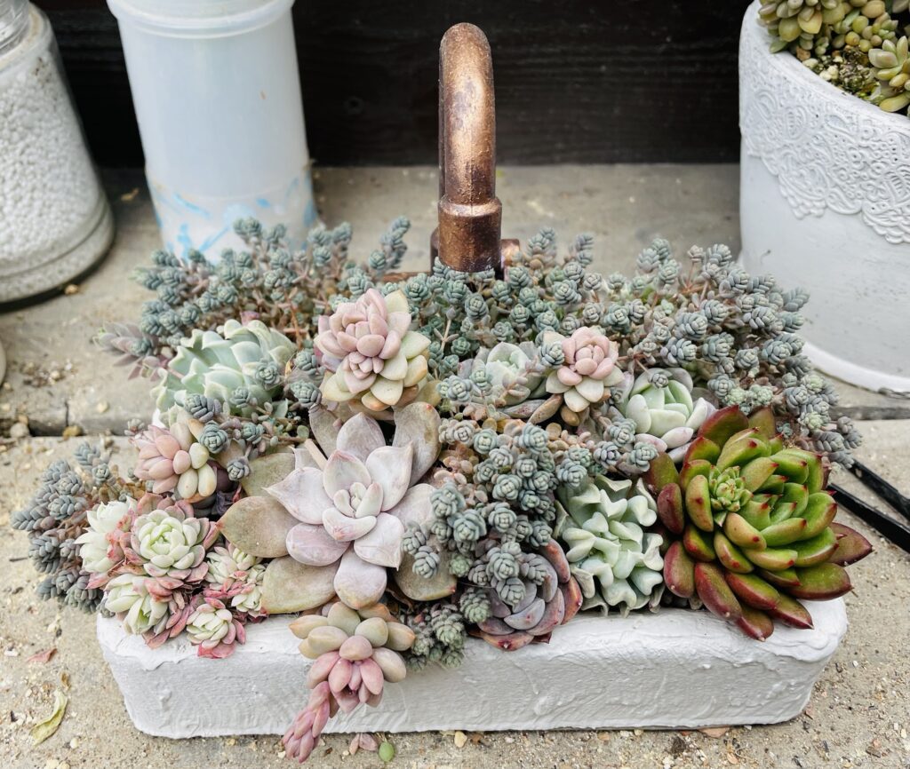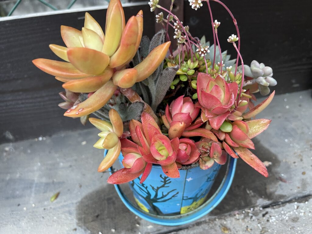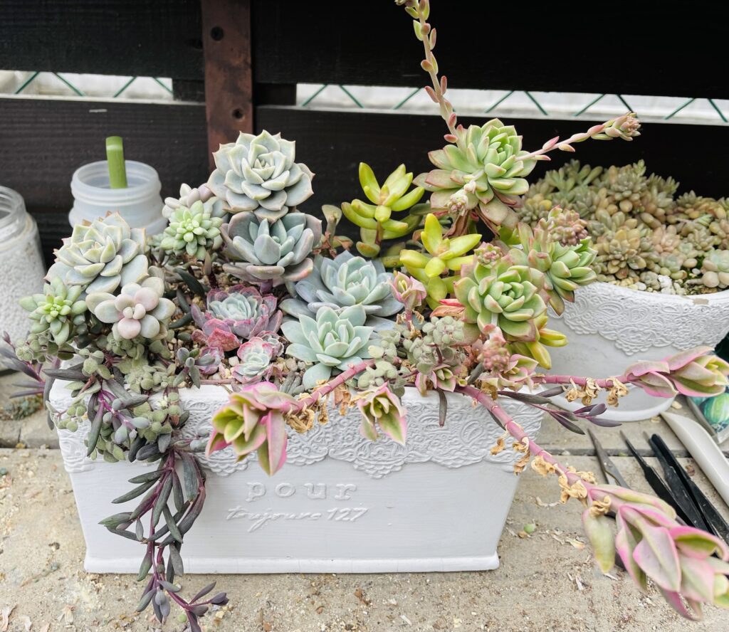 鉢の中で多肉を組み合わせて作る寄せ植えは
