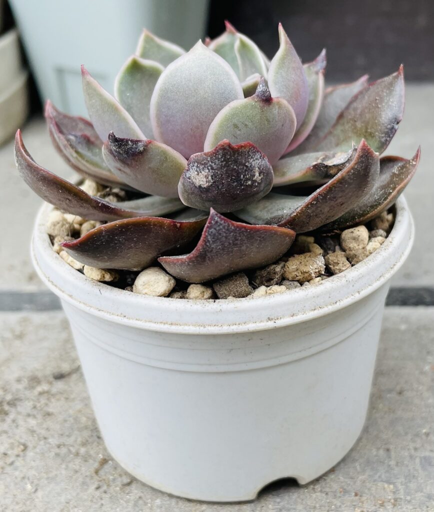 昨年の夏に弱ってしまった子で外葉はその名残で先が焦げています。