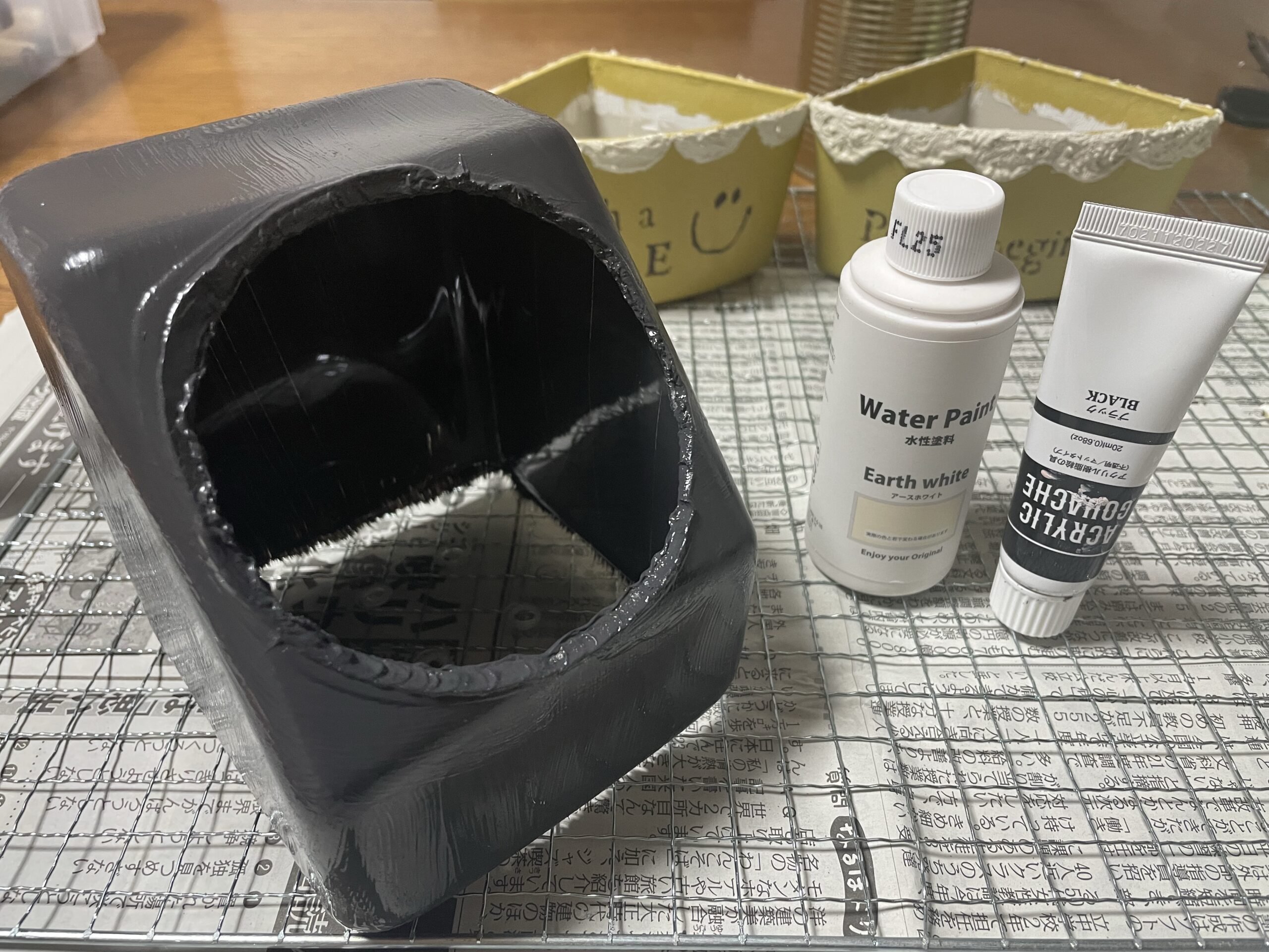 今回は、セリアの水性塗料アースホワイトにアクリル絵の具の黒を混ぜて、濃いめのグレーにしました。