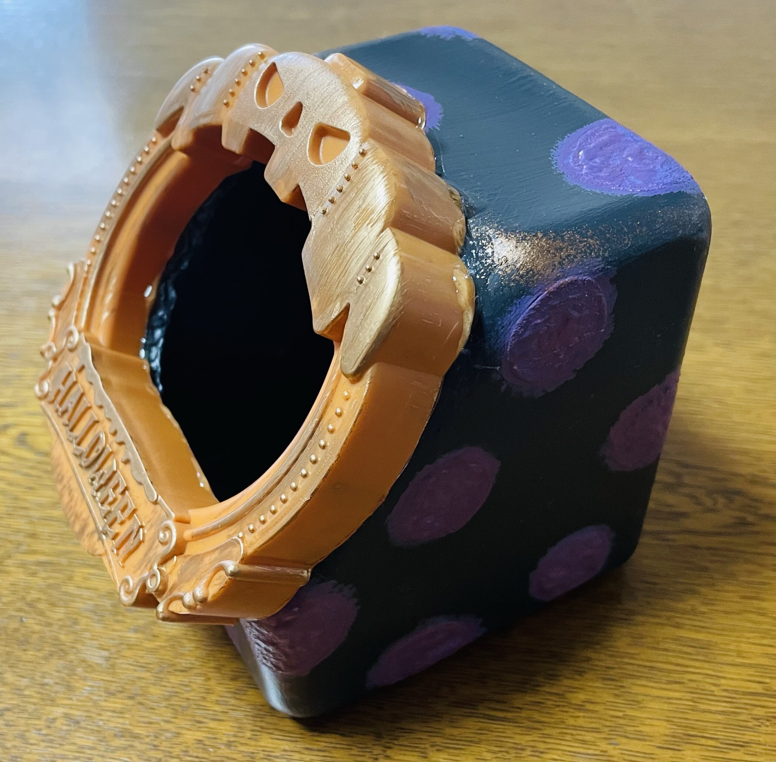 水玉部分はアクリル絵の具の赤と青を混ぜて好みの紫色🟣を作り着色。