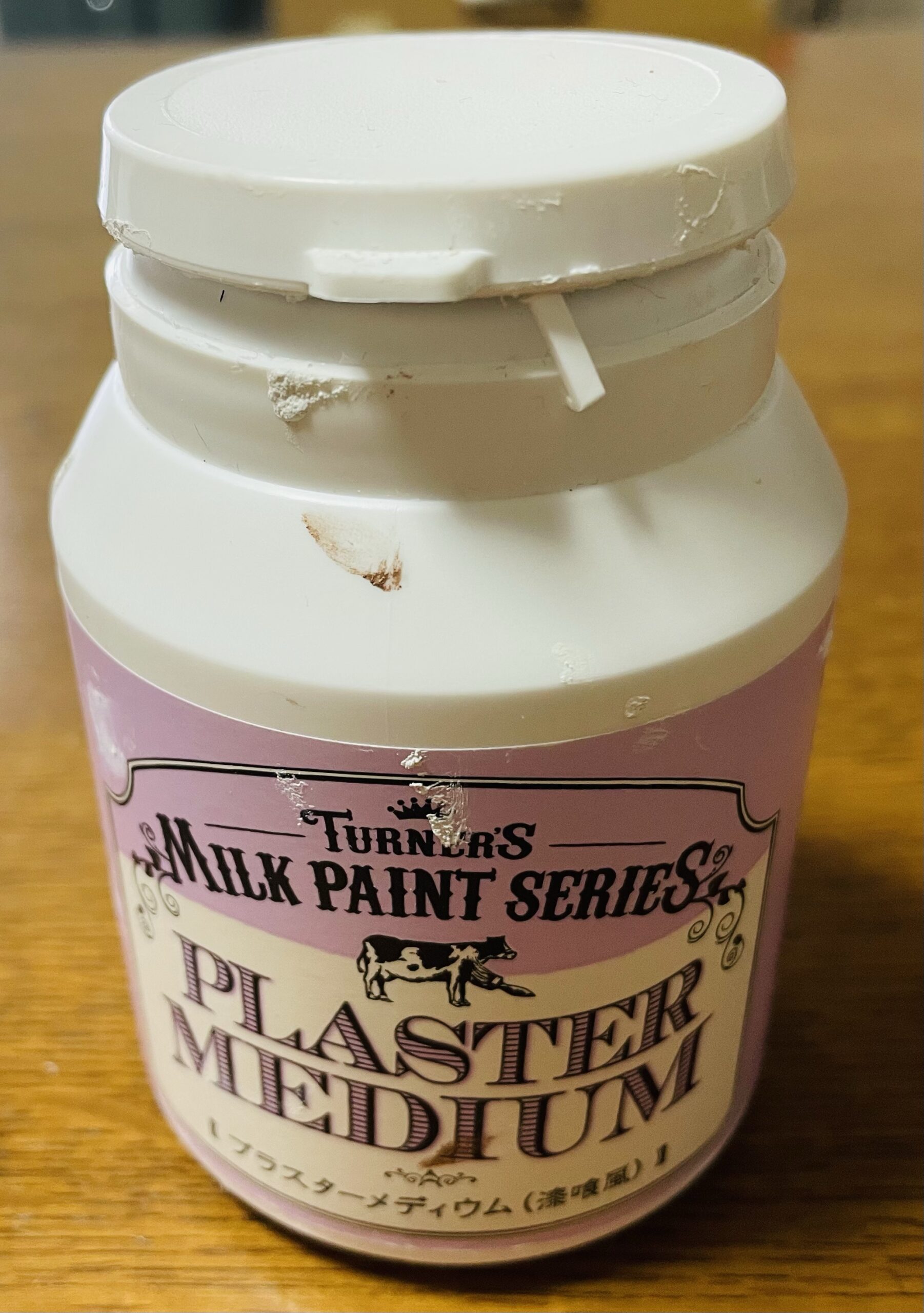 水玉模様を描きます。少し立体感を出したかったのでターナーミルクペイント プラスターメディウム漆喰風を使用しました。